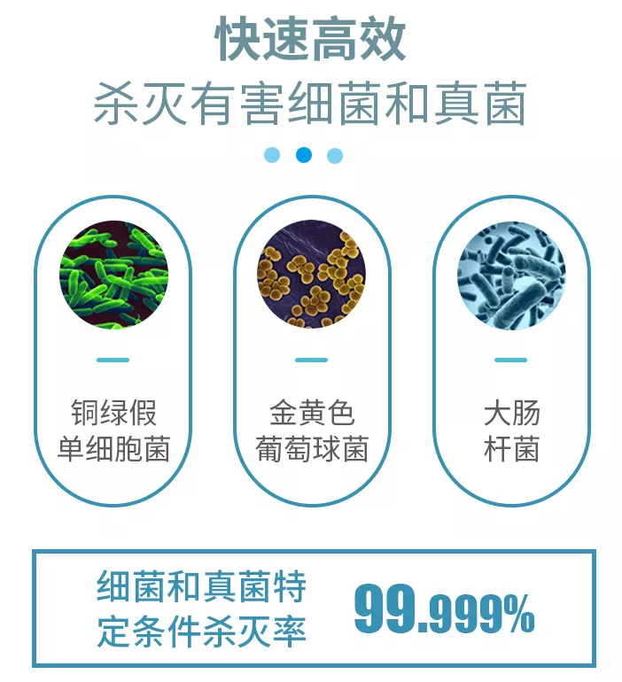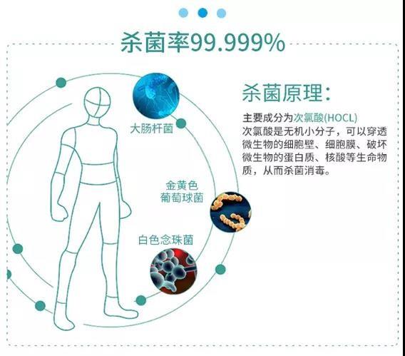 能杀灭99.99%的致病菌,无刺激、无腐蚀、不刺鼻,首选次氯酸消毒剂