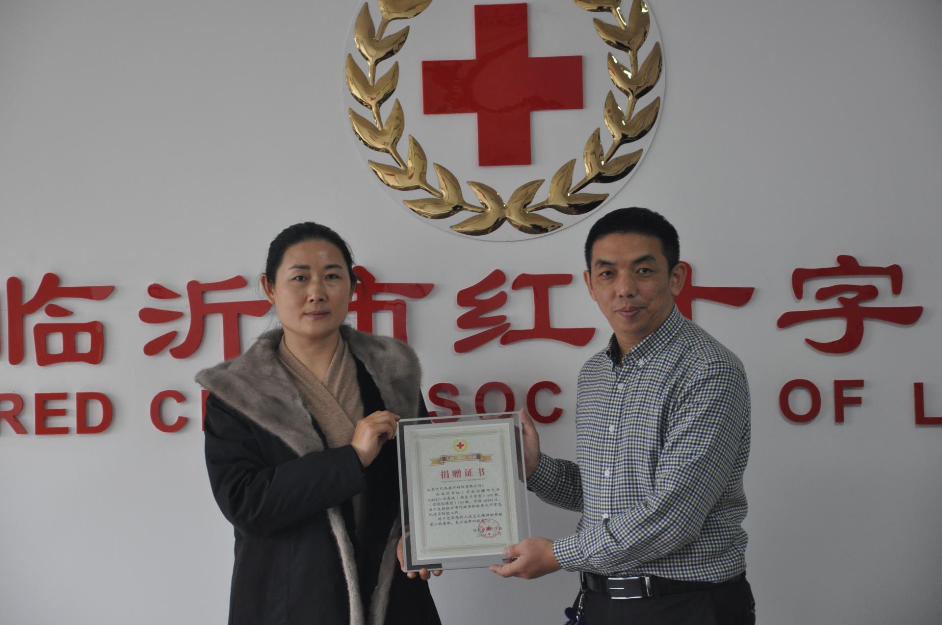 ▍阿巴乔医疗科技公司通过市红十字会向临沂市政务服务中心捐赠阿巴乔次氯酸消毒液