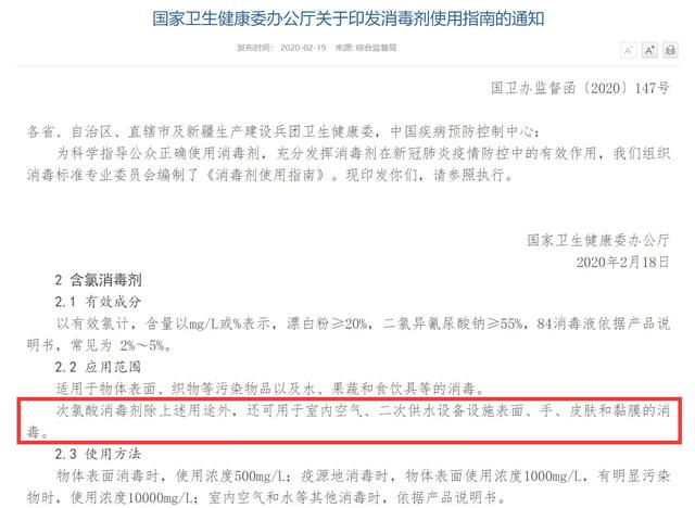 2020年,国家卫生健康委发布的消毒剂使用指南中也提到次氯酸水的应用范围。