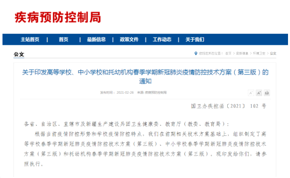 关于印发高等学校、中小学校和托幼机构春季学期新冠肺炎疫情防控技术方案(第三版)的通知——