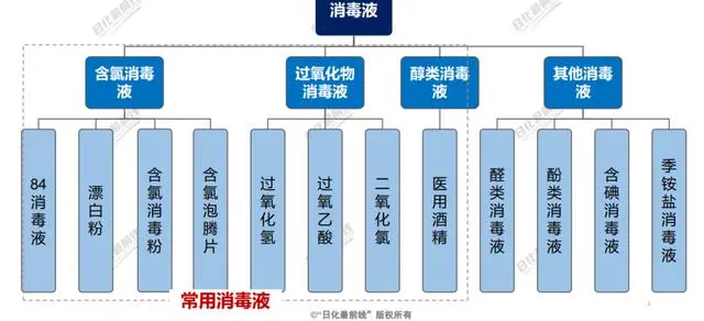 2020年度消毒产品市场需求一度攀升,截至目前疫情常态化防控期间,数据显示消毒产品销售呈现持续大幅度正增长,尤其是具有杀菌消毒功效的产品,诸如次氯酸消毒液,广受消费者认可。疫情使得人们对于消毒产品的需求是非常迫切的,近八成消费者表示疫情后更加注重居家、户外环境消毒,消毒已经成为大家的健康生活新常态,尤其是对于居家安全、环境安全、空间安全、物表安全等的需求是最为迫切的。就目前市场情况分析,消毒液分为四大类。生活常用的消毒液中,含氯消毒液因低廉的价格和较好的适用范围,使用最为广泛,占到达到1/4,其次是含醇类消毒液,在医用方面占比较大,总的占到达到18%。