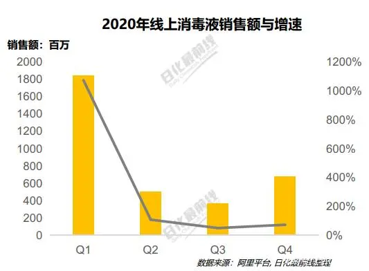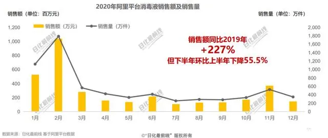 2020年阿里平台消毒液总体销售额近30亿元,销量超过6000万件+。