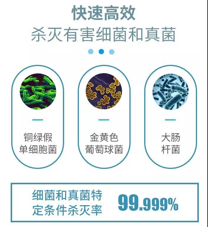阿巴乔次氯酸消毒液作为一类消毒产品获得卫健委备案认证,可有效杀灭欧盟规定的各类病菌,杀菌率达到99.999%。经口无毒无残留,安全环保、温和免洗、自然水解,高效、安全、广谱,非常适合与人体接触的环境、物表等消毒。